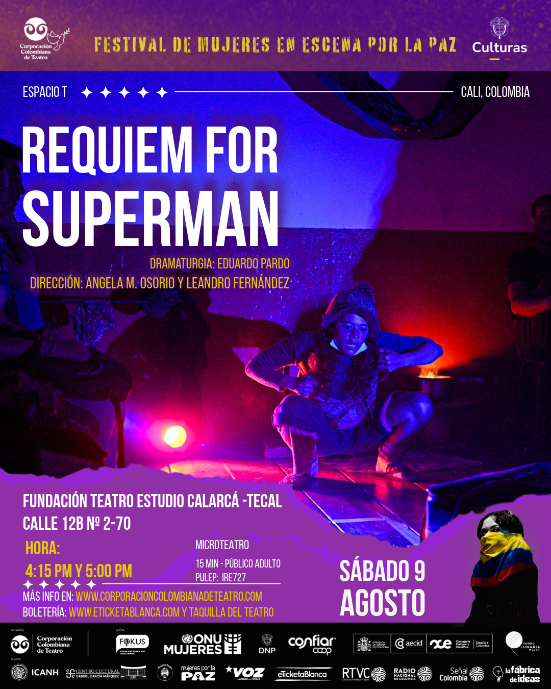 “Como Quien Aplasta Piojos con las Uñas” es una obra que habla de una mujer que acaba de ser asesinada por su esposo y el publico llega a la escena del crimen, ella, muerta, habla con ellos. Es una obra donde el publico tiene una participacion activa, habla y confronta sobre la violencia de genero, incentitiva la reflexion sobre este tema, sobre el papel de las personas que rodean a la victima, el de las instituciones que deben proteger a las mujeres. “Requiem for Superman” es la historia de una mujer en condicion de calle con una neurodivergencia que se encuentra el cadaver de Superman su heroe de la infancia. Nos invita a reflexionar sobre los sueños y la realidad de las personas que viven en esta condicion.