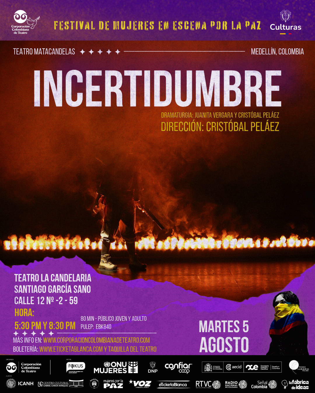 Sinopsis: El siglo XX estalló en las vanguardias como un grito contra las certezas que se precipitaban al abismo. Nuestro tiempo parece habitar en las crestas sordas de esa explosión: continúa el estruendo, pero ya queda poca perplejidad. En esas aguas imprecisas, el Teatro Matacandelas clava su nueva estaca con Incertidumbre, un poema dramático que renuncia a la comodidad de la anécdota para convertirse en un collage de despojos. Inspirada en sus santos patrones —Brecht, Vian y Tzara—, la pieza nos sumerge en la conciencia de un «Hijo» que no es un personaje, sino una generación que se alza contra las instituciones que lo formaron —la escuela, la iglesia, la familia—, reveladas ahora como edificios en corrupción. La escena se puebla de voces que son esquirlas de un mundo roto, un mapa del desconcierto donde la única rebelión posible es el rechazo lúcido y la pregunta por el verdadero sabor de la vida.