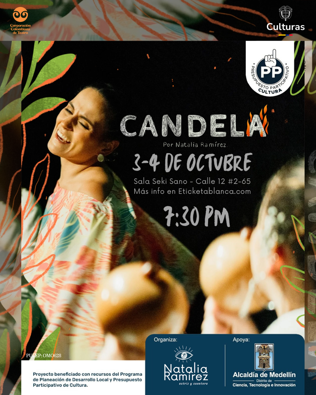 Valor de la boletería:  General 30.000 COP / Estudiantes, adulto mayor, en bicicleta y personas en condición de discapacidad: 15.000 COP . venta en la taquilla del teatro y en  eTicketaBlanca – Más Información: 3155333500 – Instagram @natyru
